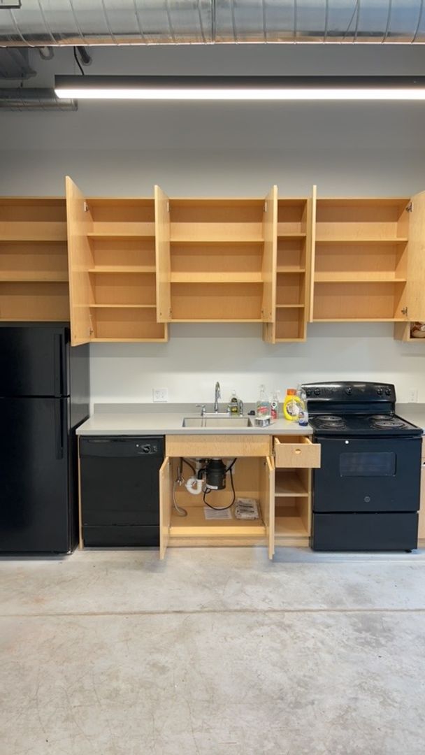 Studio units are the most common space available at Dreamtroit. Raw and industrial but with comfortable and efficient kitchen and bath, these micro loft style units come in a multitude of sizes. Useable for living space, small business, or artist/musician studio.