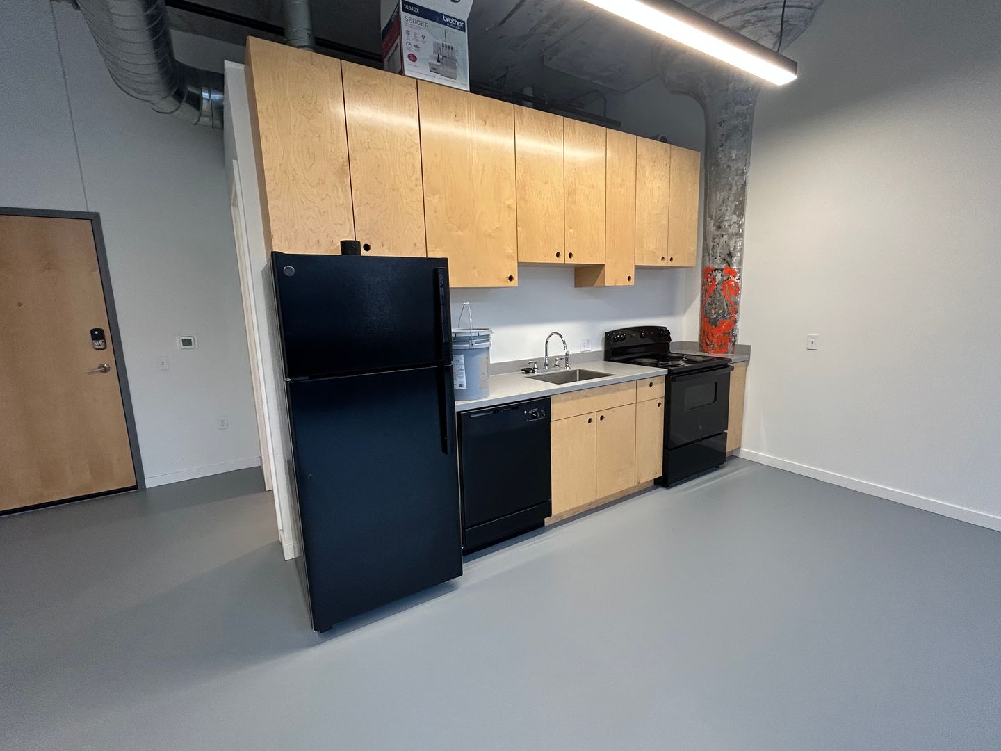 Studio units are the most common space available at Dreamtroit. Raw and industrial but with comfortable and efficient kitchen and bath, these micro loft style units come in a multitude of sizes. Useable for living space, small business, or artist/musician studio.